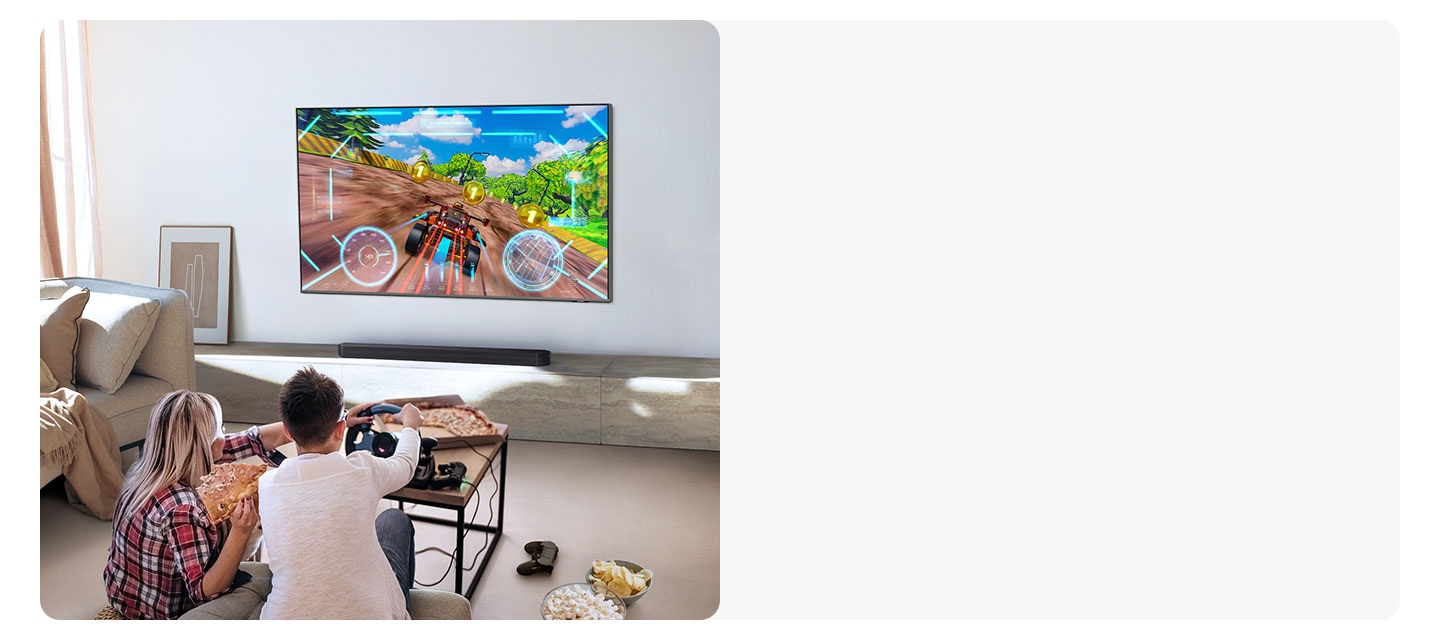 Погрузитесь в игру с мощным 3D-звуком. Саундбар автоматически настраивает звук для игр, когда обнаруживает игровую консоль, подключенную к телевизору Samsung.