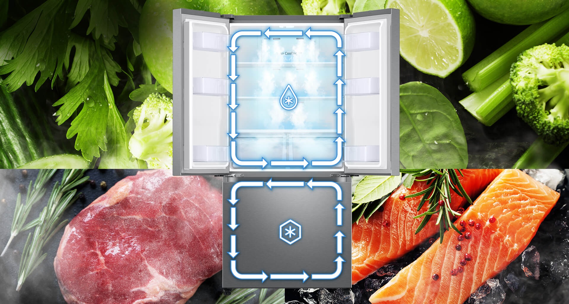 Cистема охлаждения Triple Cooling независимо контролирует и оптимизирует температуру, обеспечивает максимальную влажность продуктов и предотвращает смешивание запахов между камерами.